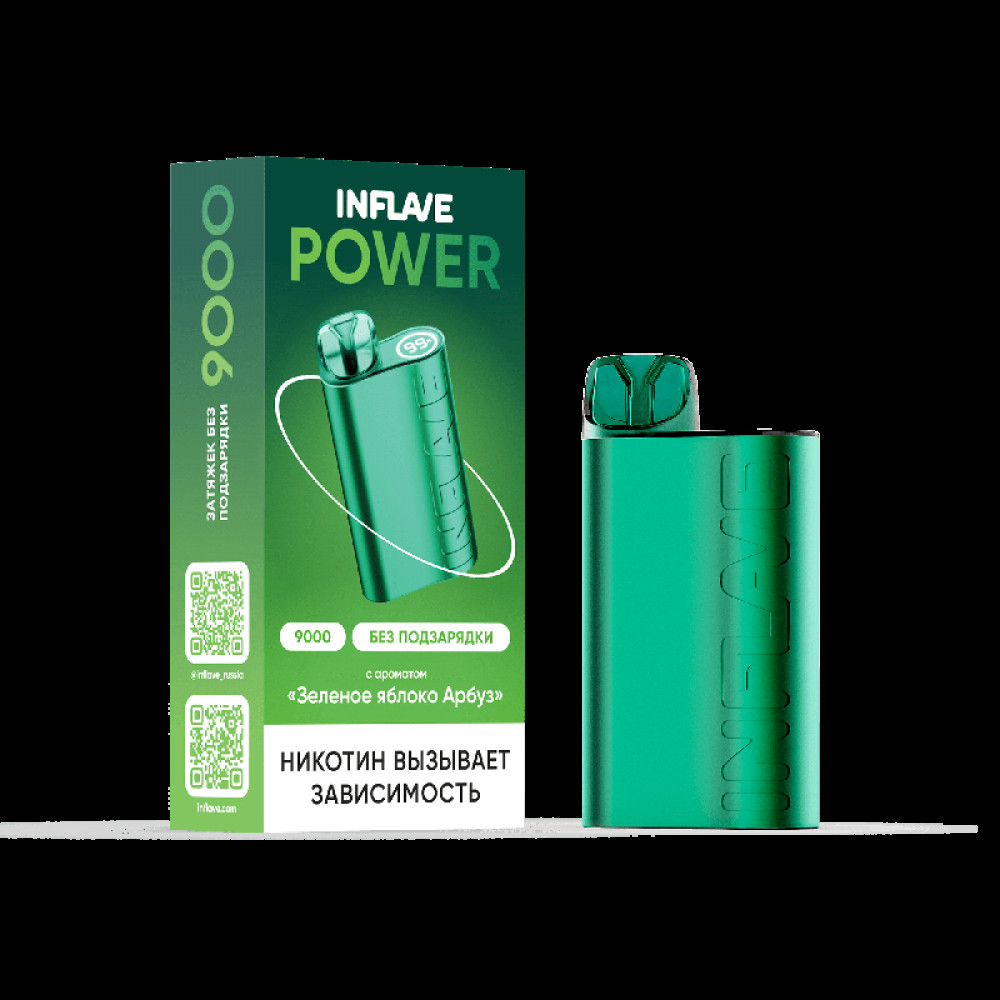 Электронная сигарета INFLAVE POWER 9000 затяжек Зеленое Яблоко Арбуз - купить в Нерехте